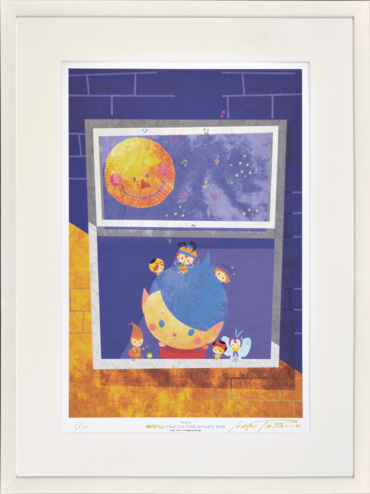 版画作品は、子供の笑顔と音楽をテーマに制作。