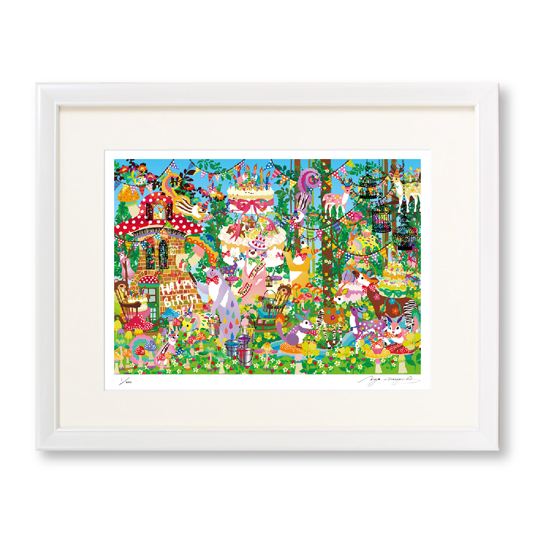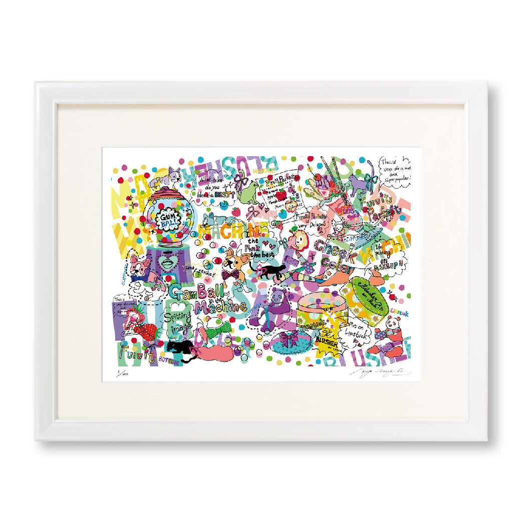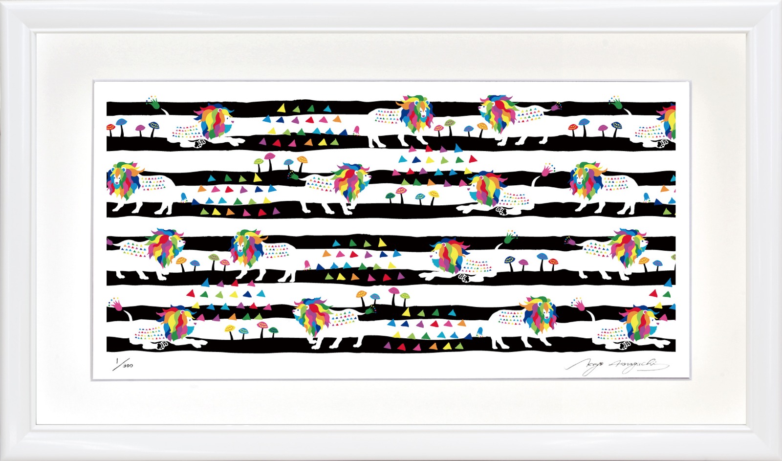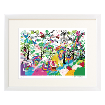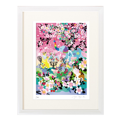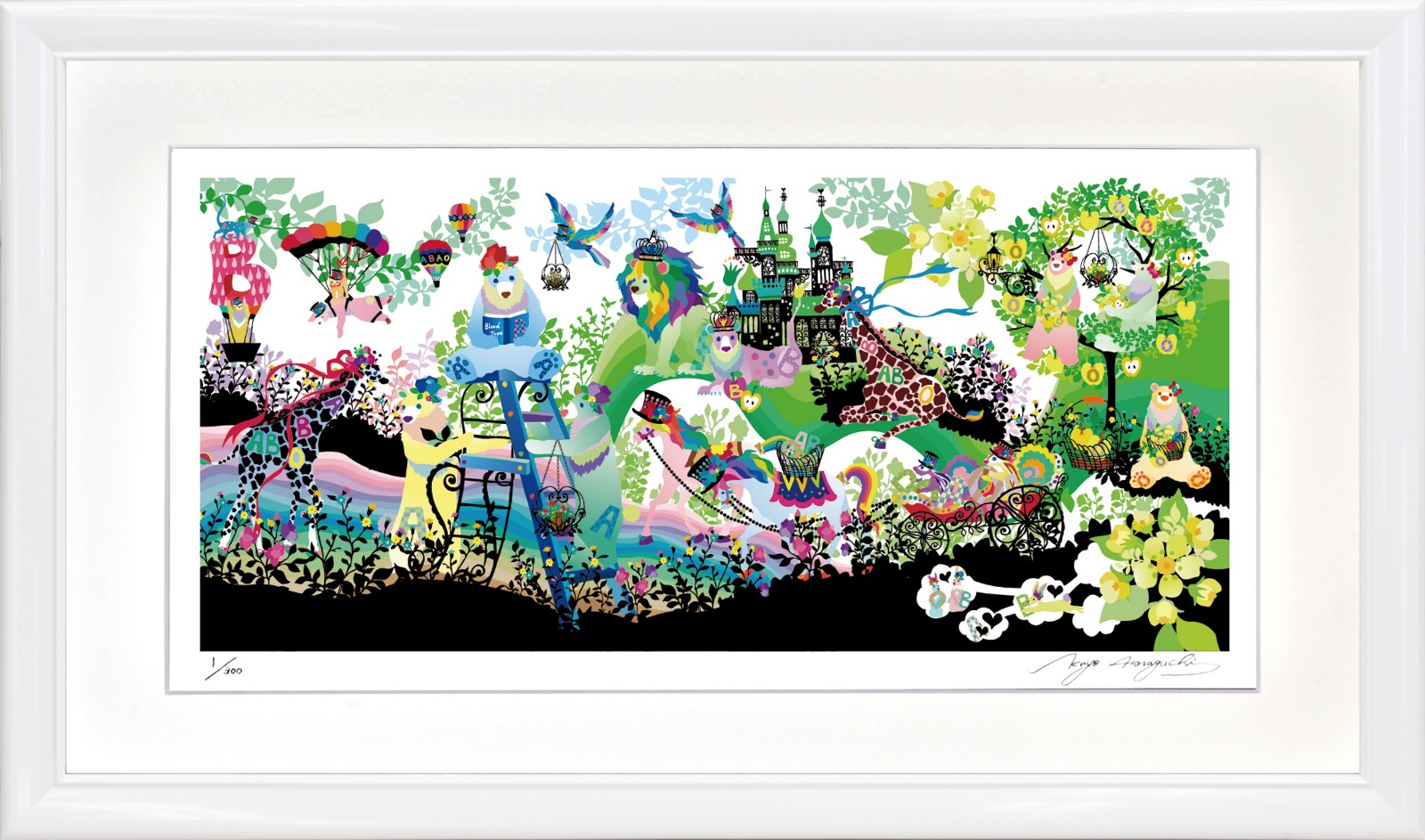 おんなのこ、植物、動物といった様々なモチーフが重なり合う鮮やかな色使いの個性的なグラフィックを得意としている。