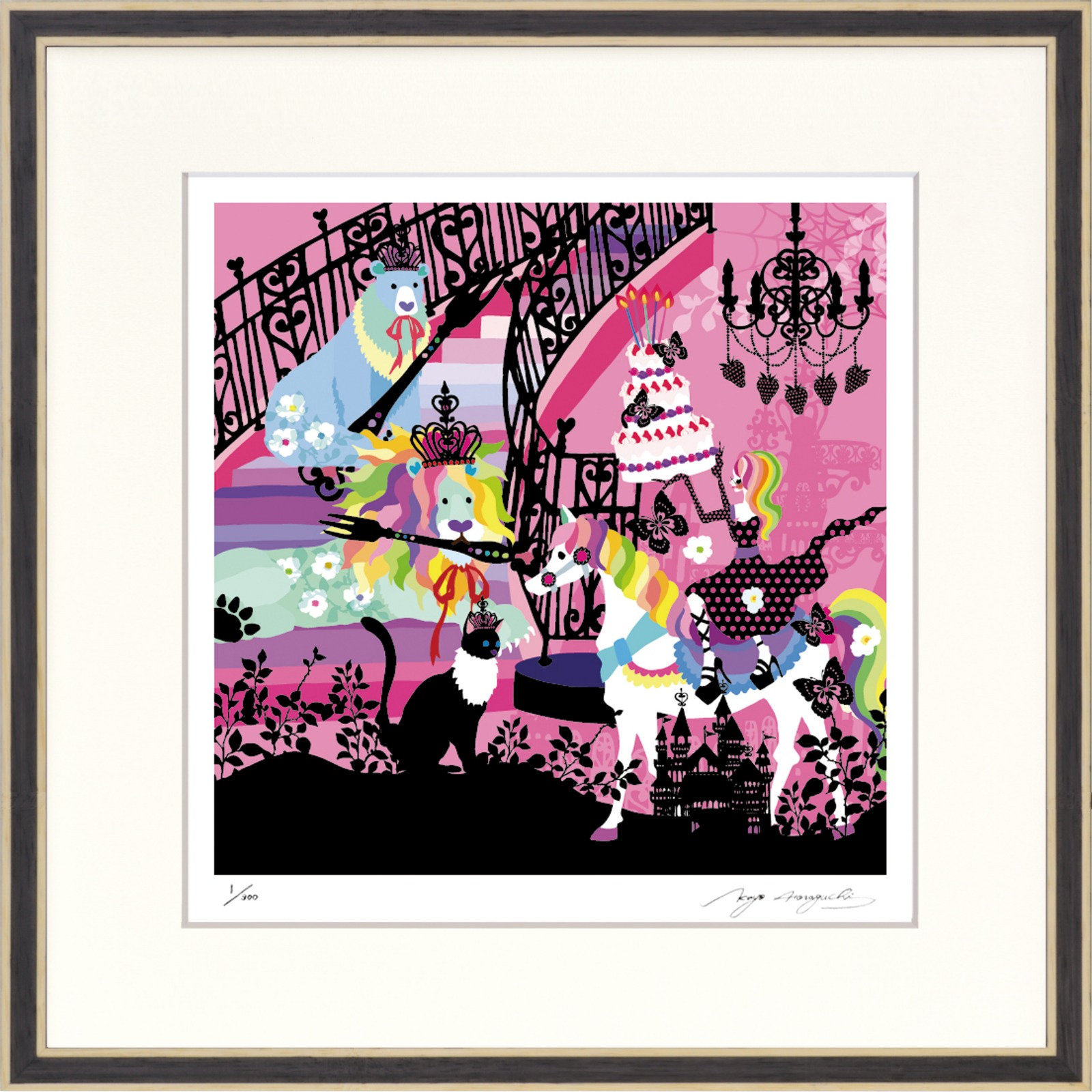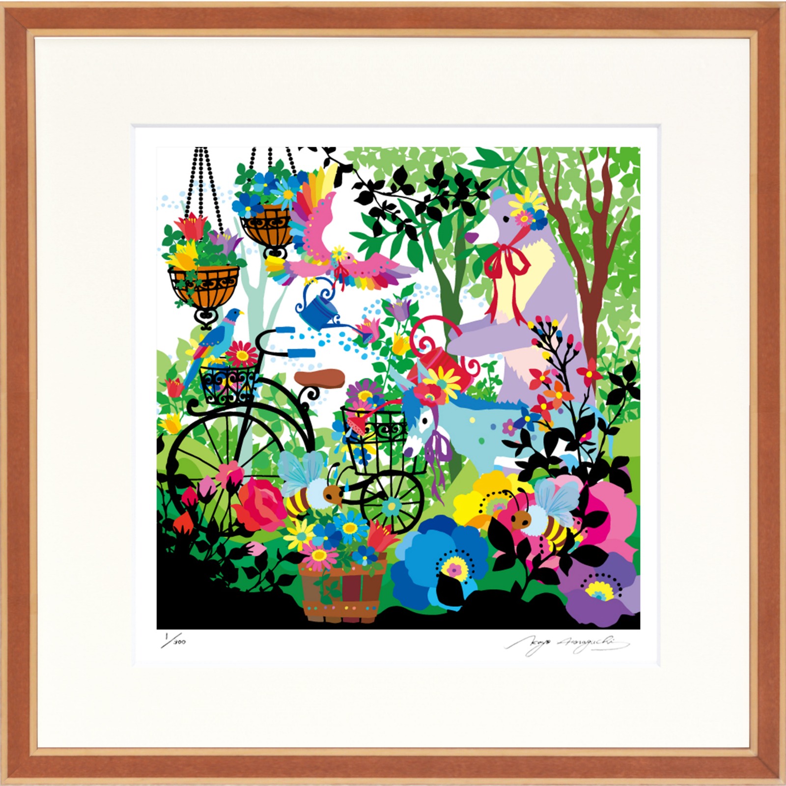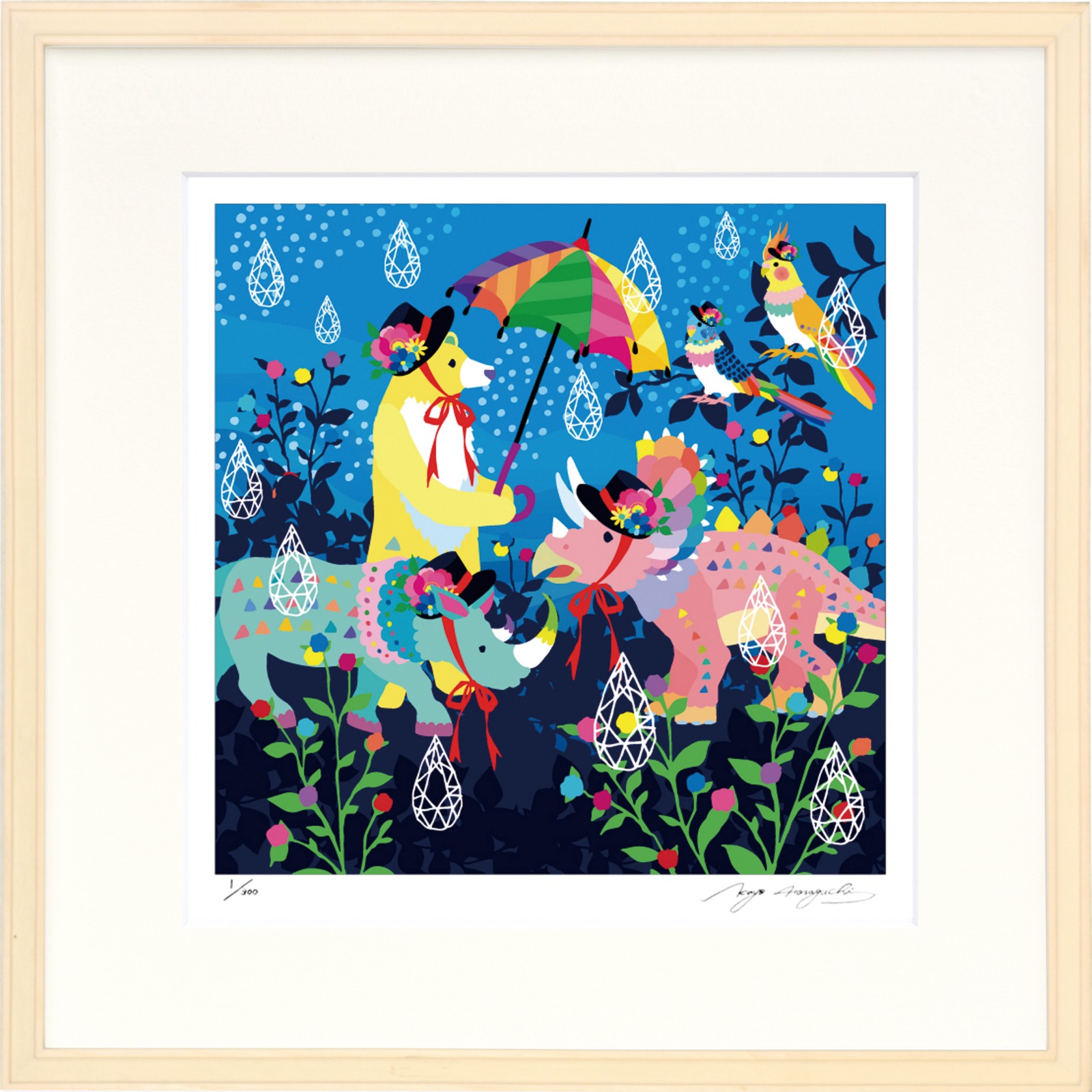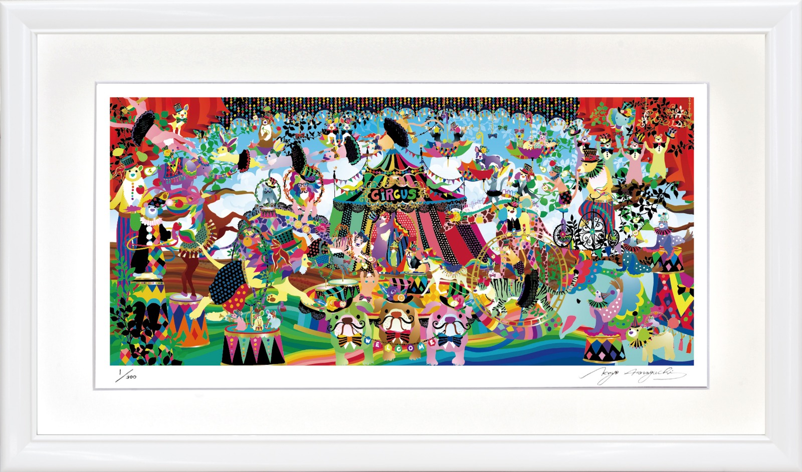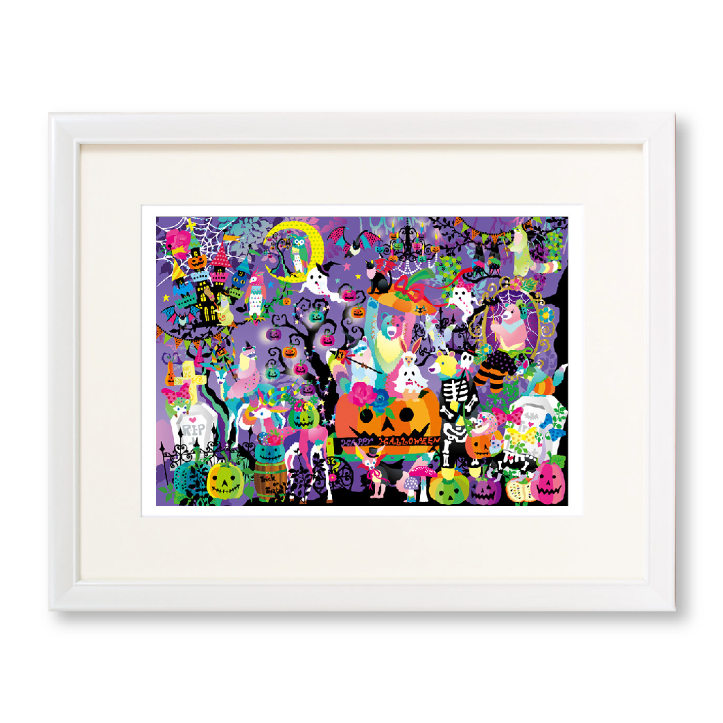 おんなのこ、植物、動物といった様々なモチーフが重なり合う鮮やかな色使いの個性的なグラフィックを得意としている。