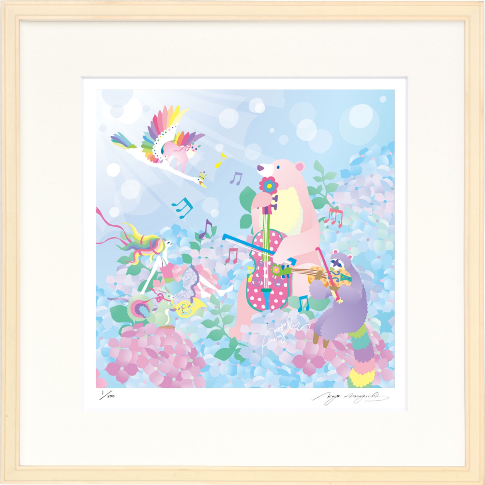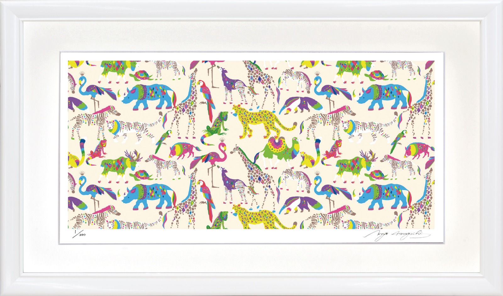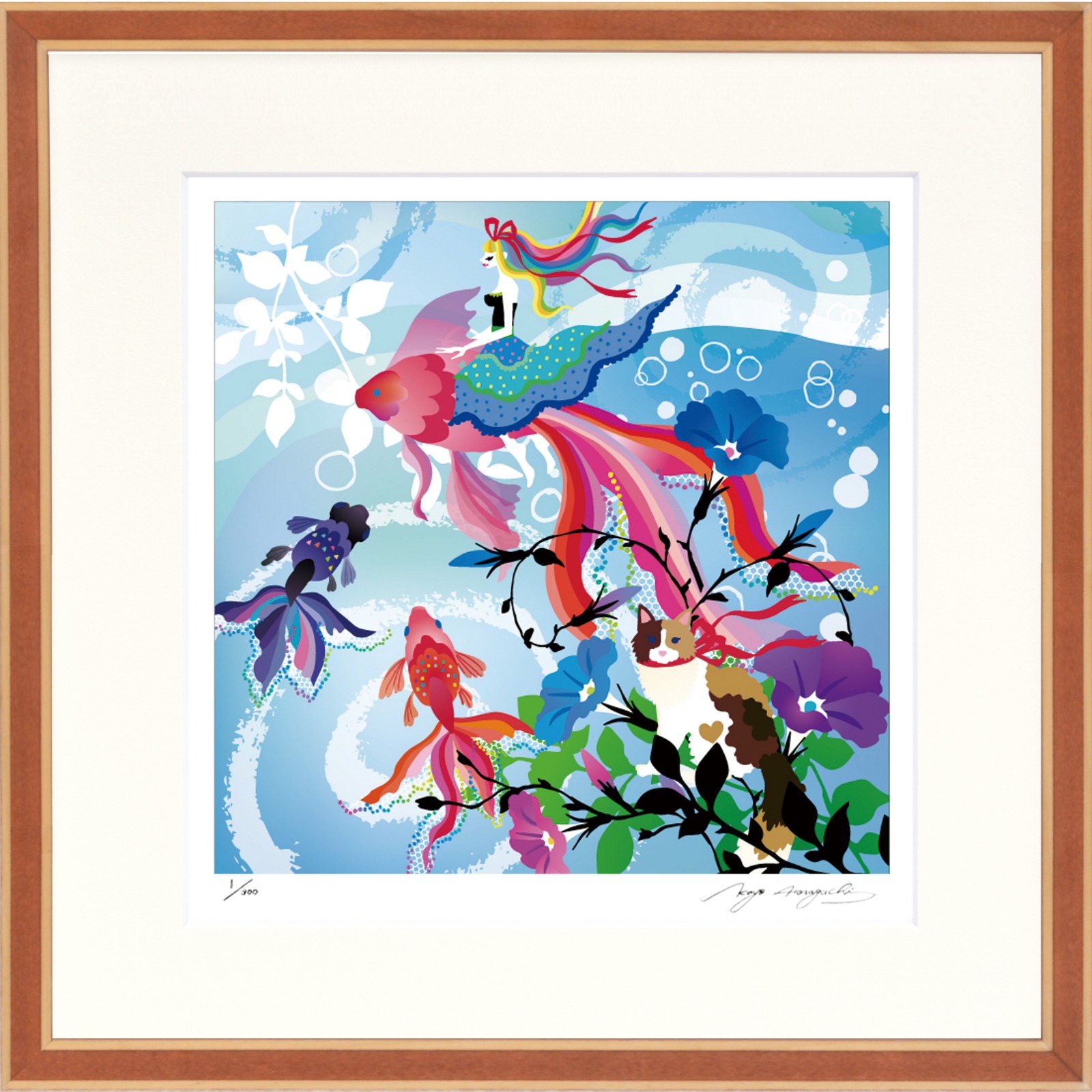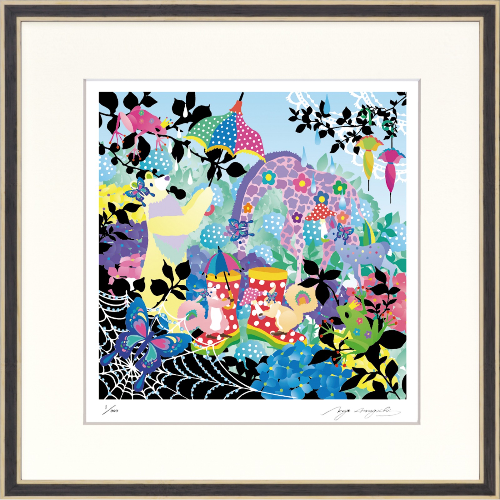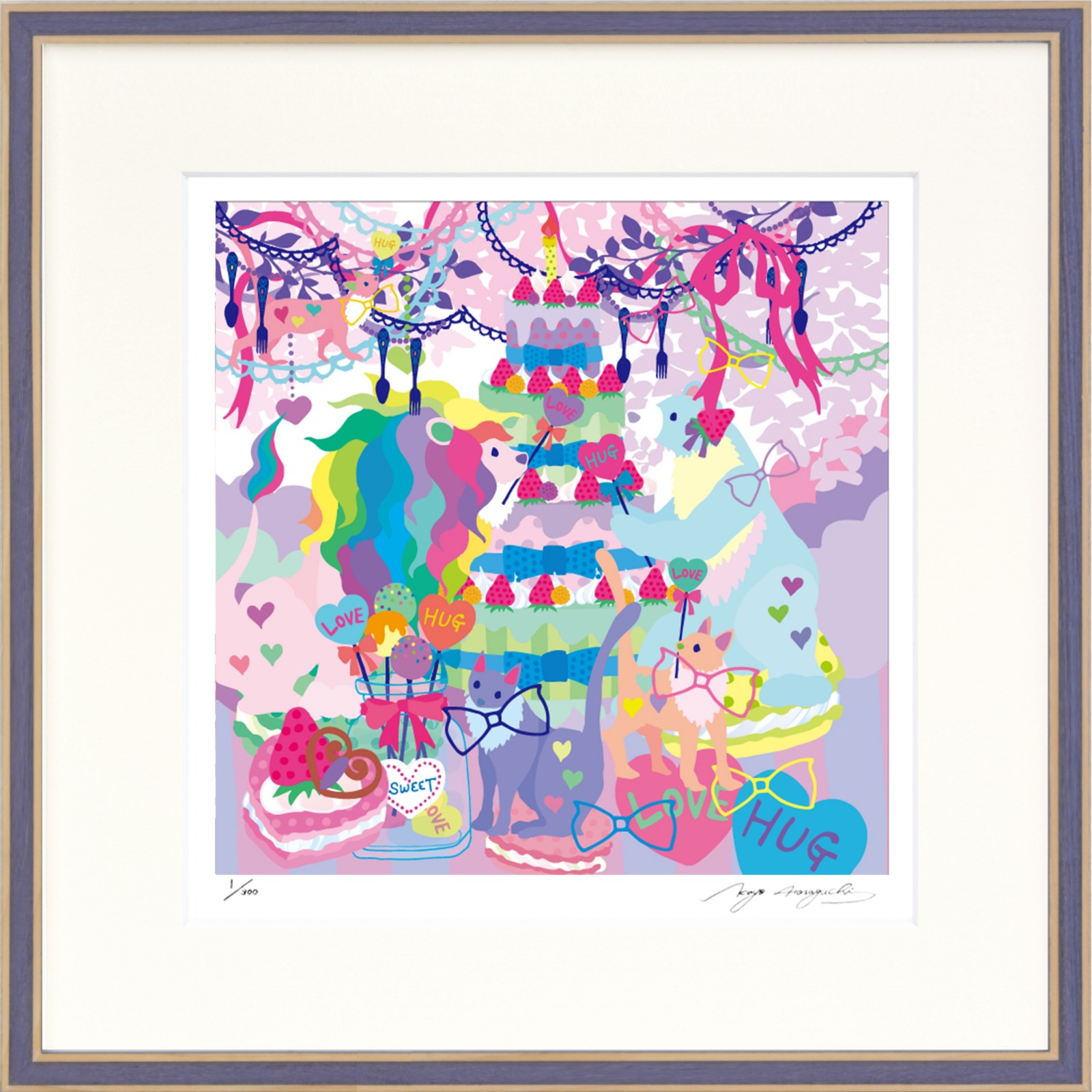 おんなのこ、植物、動物といった様々なモチーフが重なり合う鮮やかな色使いの個性的なグラフィックを得意としている。