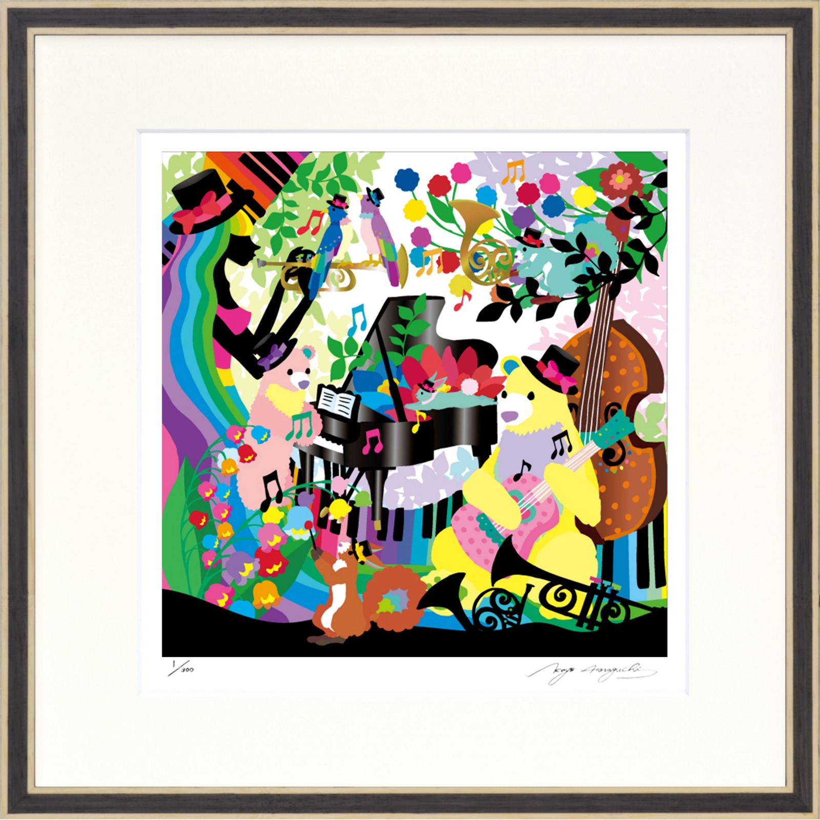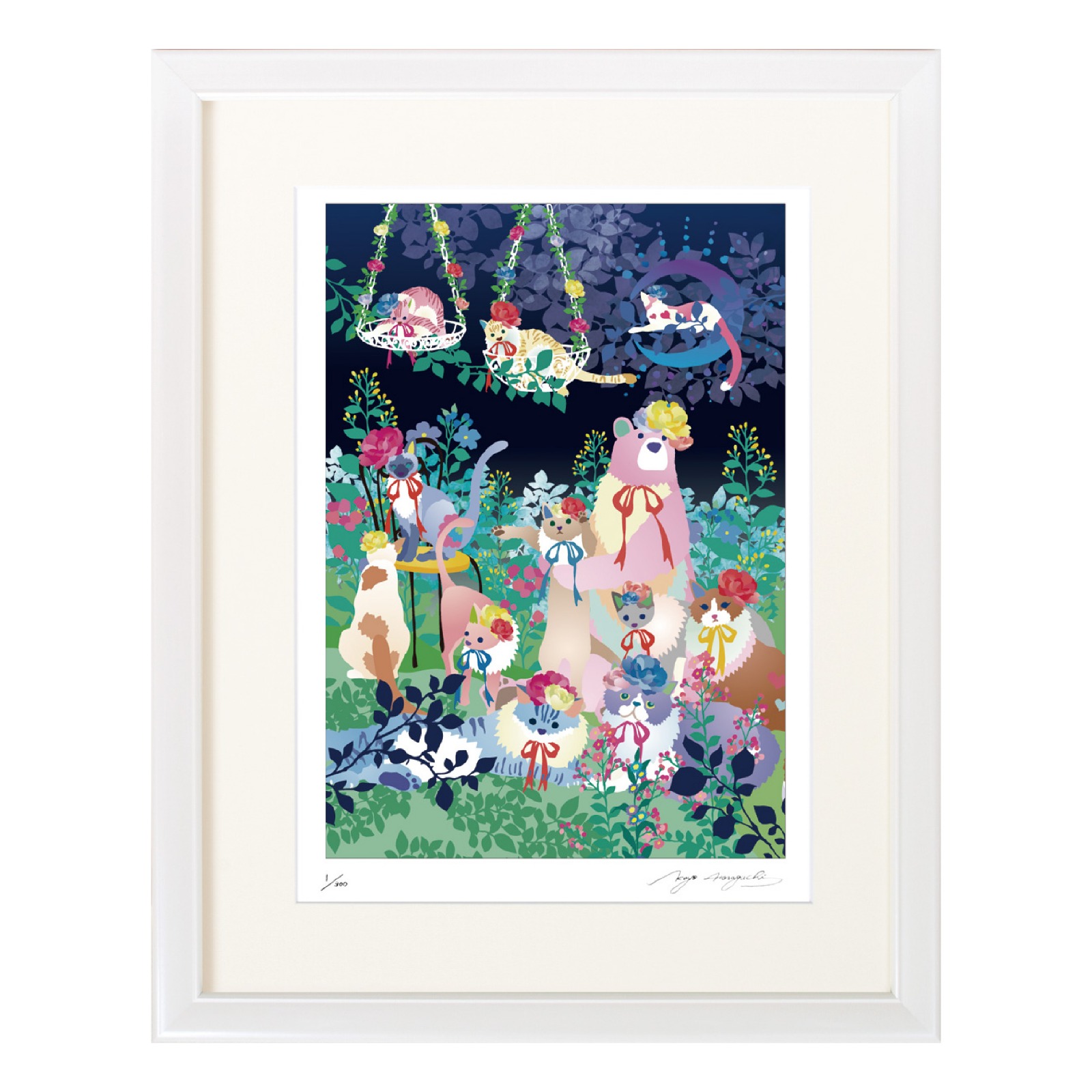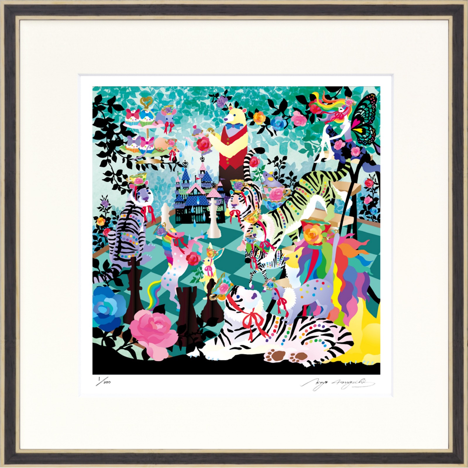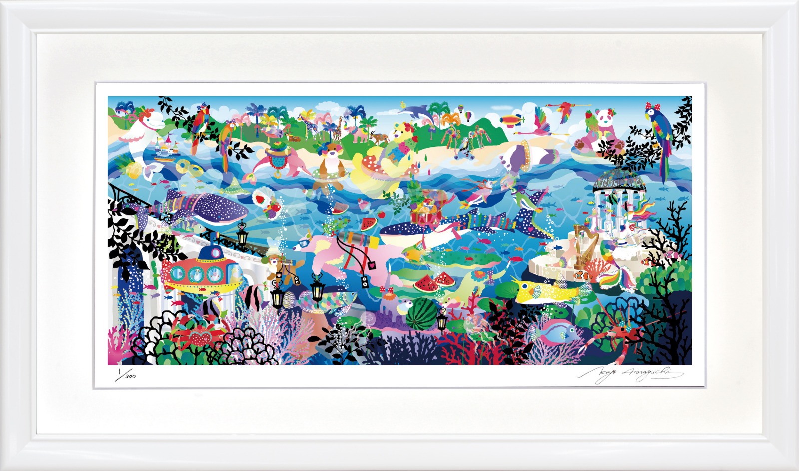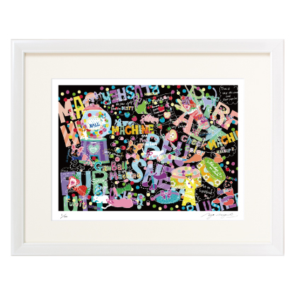 おんなのこ、植物、動物といった様々なモチーフが重なり合う鮮やかな色使いの個性的なグラフィックを得意としている。