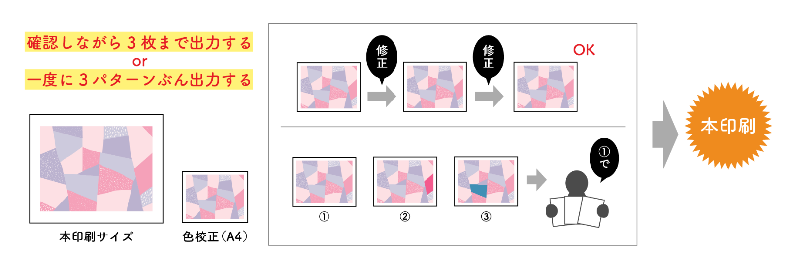 ・色校正は原稿サイズに関わらずA4サイズでお送りいたします。