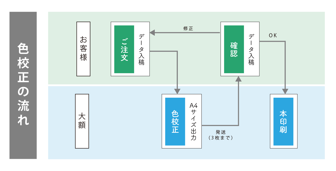 ・色校正紙到着後、修正がある場合は、修正後のデータをお送りください。