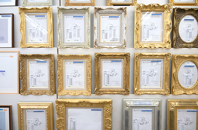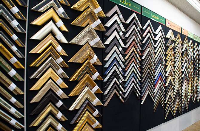 ショールームでは、既製サイズの額縁・絵画の販売をはじめ、額縁のオーダー(別注)や大量生産なども承っております。