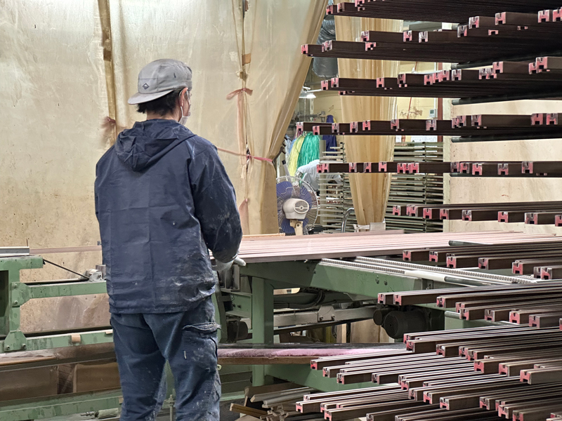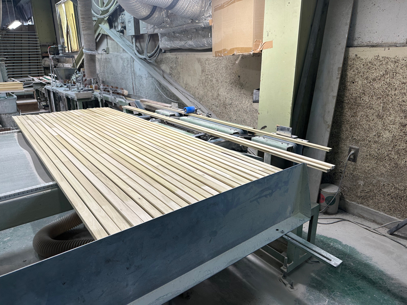 長年使い込まれた機械と、それを扱う職人の確かな手腕によって精度の高い仕上がりが可能です。素材の癖や反りを見極め、一本一本に最適なカットを施すことで、組み立て後の美しさと安定性が保たれます。