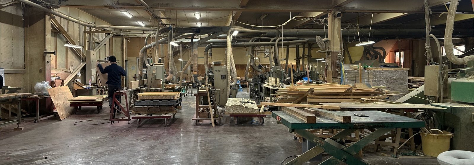 三重工場は大額株式会社の主要な生産拠点として、製材の状態から完成品となる額縁までを一貫して生産する体制を誇ります。