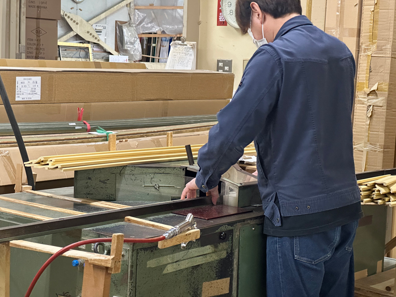 長年の経験に裏付けされた判断力と加工技術によって、使いやすく美しい木材が額縁の素材として生まれ変わります。