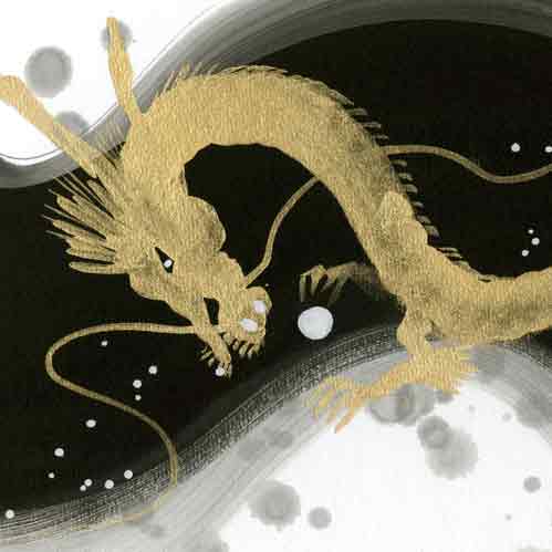 平石智美 額装品 インテリア 作品 切り絵 龍 竜 辰 和風 300角 水墨画風