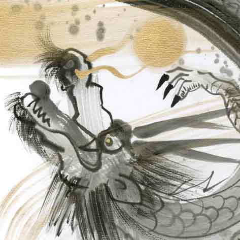 平石智美 額装品 インテリア 作品 切り絵 龍 竜 辰 和風 300角