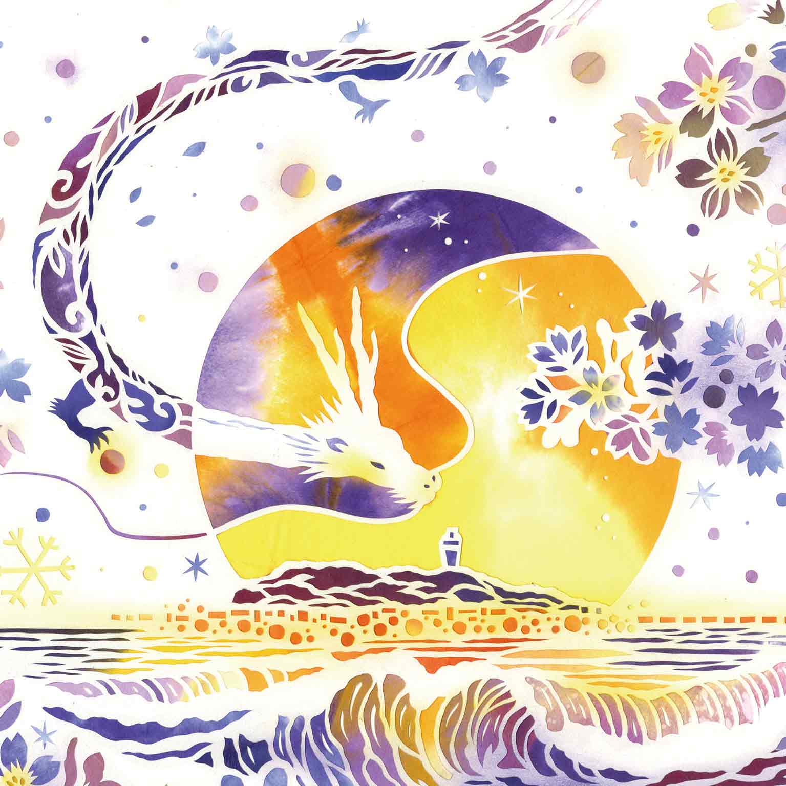 平石智美 額装品 インテリア 作品 切り絵 龍 竜 辰 和風 大衣 桜