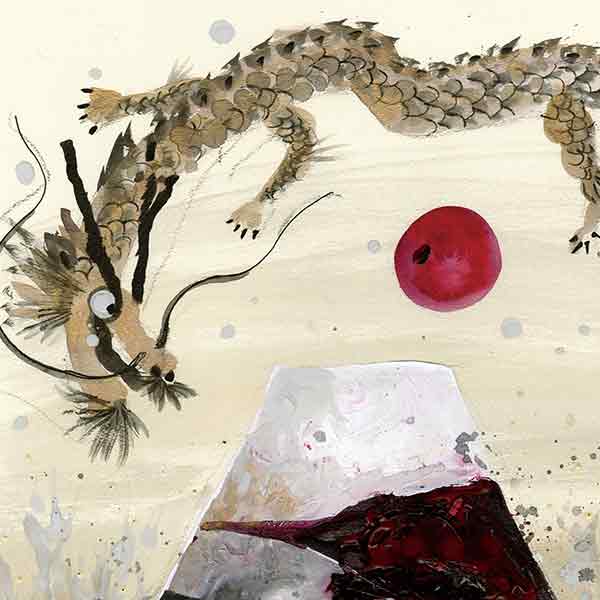 平石智美 額装品 インテリア 作品 切り絵 龍 竜 辰 和風
