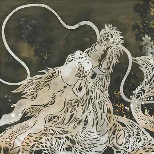 平石智美 額装品 インテリア 作品 切り絵 龍 竜 辰 和風 大衣 水墨画風