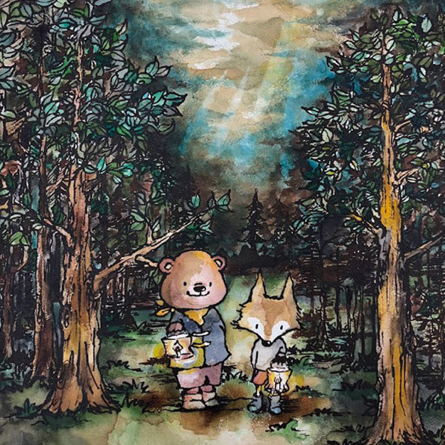 イラストレーターKANNAが手掛けるスポイトによるアート作品。親しみやすくカントリーな雰囲気のある作品はおうちの素敵なインテリアに。