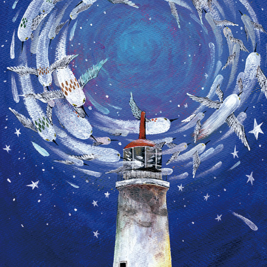 透明水彩、アクリル、ペンなどを使いファンタジーな世界を描く。