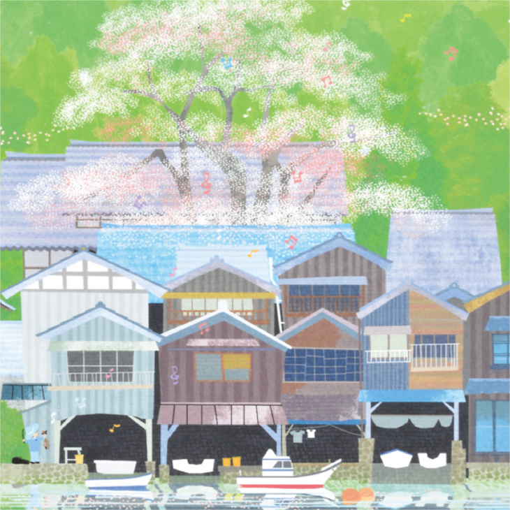 京都 伊根の舟屋と桜