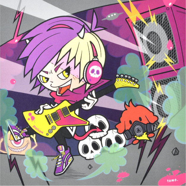 自身の作品では、趣味である音楽(ロック)とアートの融合をテーマとした作品性格を中心に精力的に活躍中。