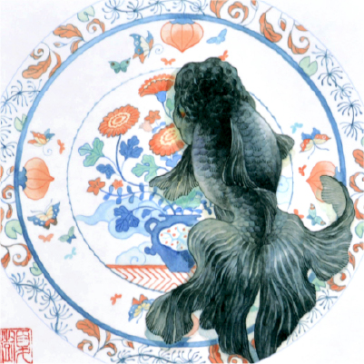 艶やかな金魚たちの世界を華やかに色っぽく表現しています。図柄ごとに作家のサイン、エディションつきの版画作品で数量限定販売です。