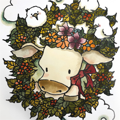 イラストレーターKANNAが手掛けるスポイトによるアート作品。親しみやすくカントリーな雰囲気のある作品はおうちの素敵なインテリアに。