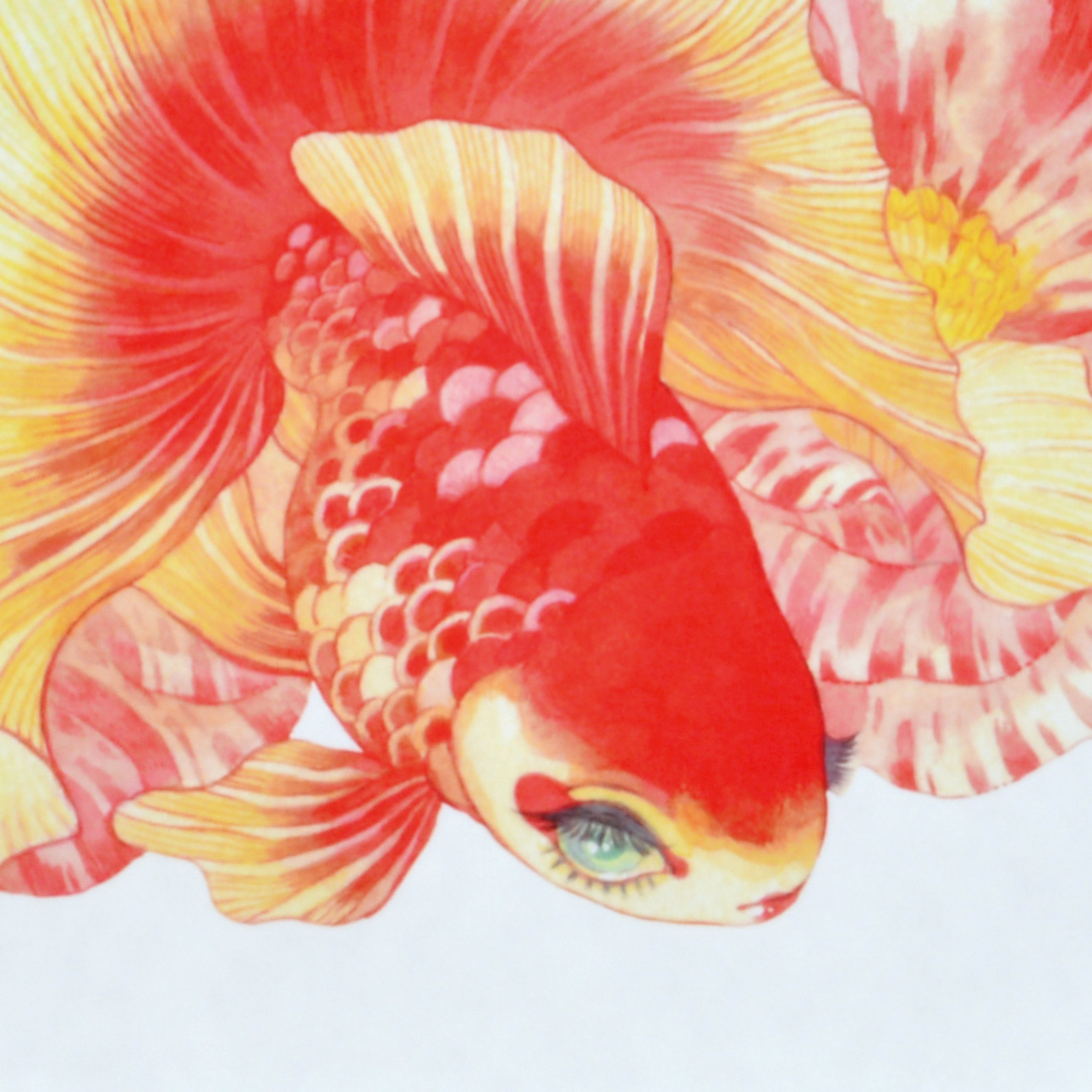 艶やかな金魚たちの世界を華やかに色っぽく表現しています。図柄ごとに作家のサイン、エディションつきの版画作品で数量限定販売です。