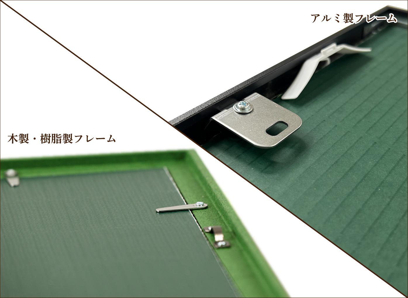 額縁裏面に段差を付けた構造により、トンボや吊り金具などフレーム内に収まり、はみ出ることがありません。