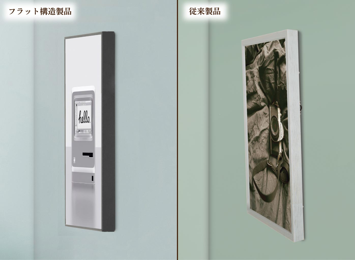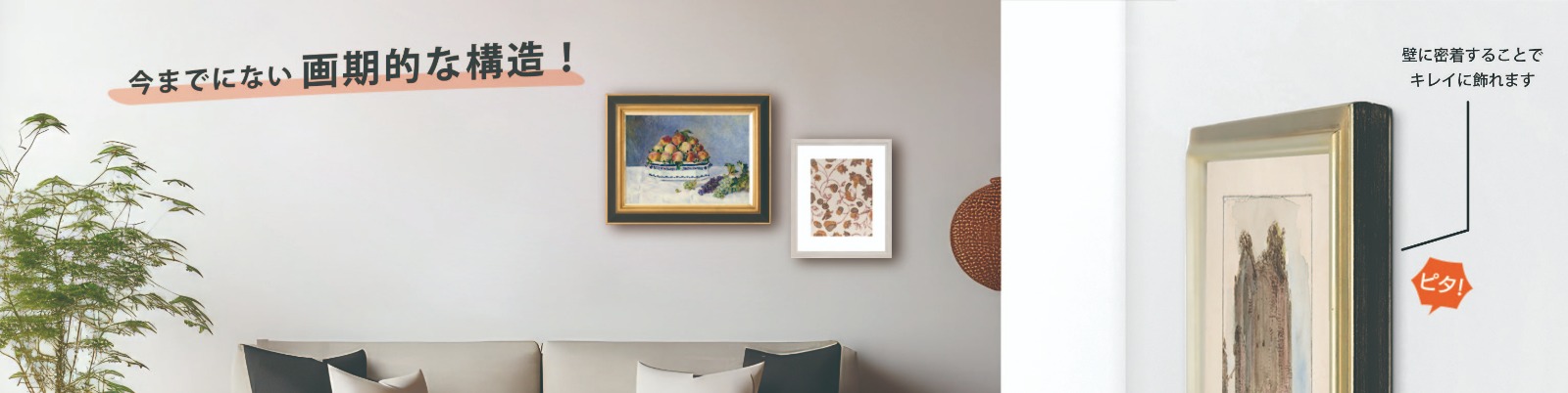 額縁裏面をフラットな構造にしたことで、フレームと壁面により密着して飾ることが出来ます。