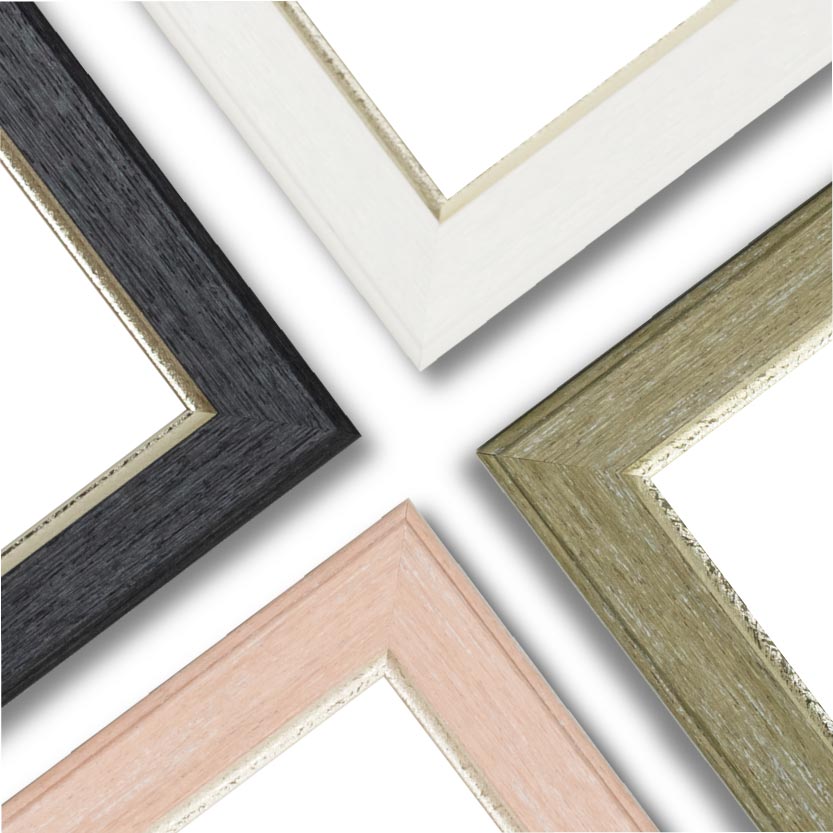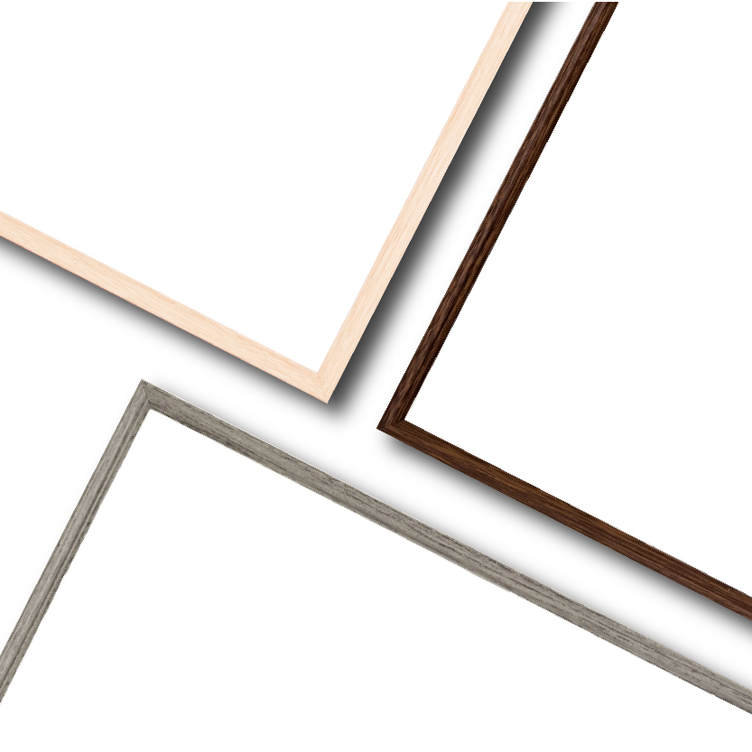 フラット構造ながらしっかりとした木製のフレーム。シンプルなデザインが作品をより引き立てます。